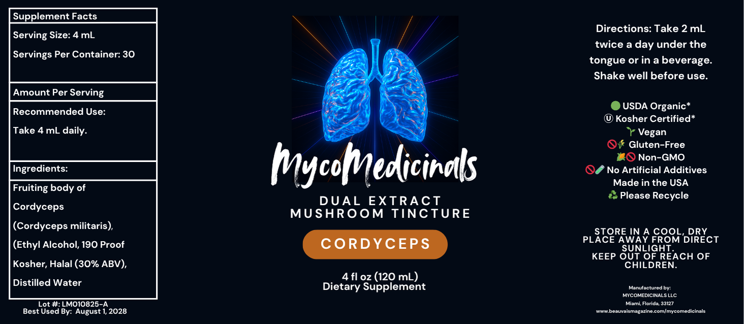 Lion’s Mane (Hericium erinaceus), Cordyceps (Cordyceps militaris), Reishi (Ganoderma lucidum), Turkey Tail (Trametes versicolor), Distilled Water, Ethyl Alcohol, 190 Proof Kosher, Halal (30% ABV)